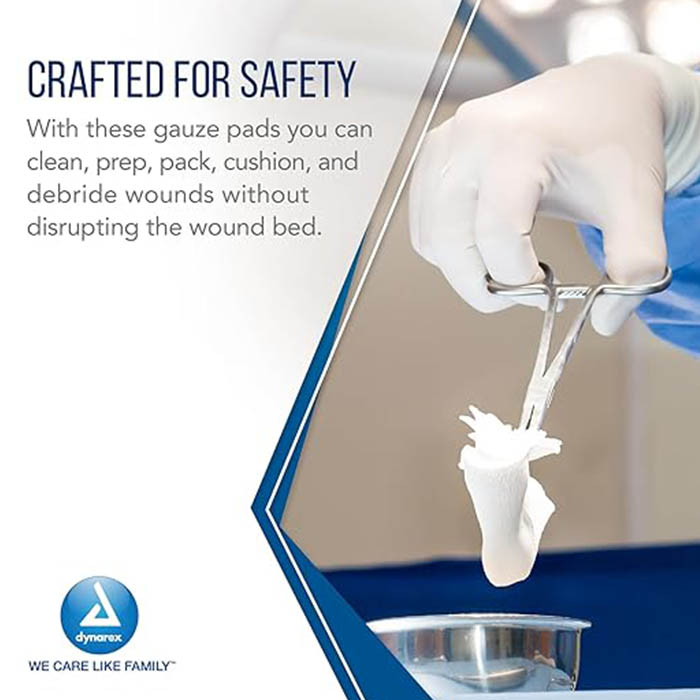 - Convenient Application – With these gauze pads you can clean, prep, pack, cushion, and debride wounds without disrupting the wound bed. They come in 2×2”, 3×3”, 4×4” sizes.
